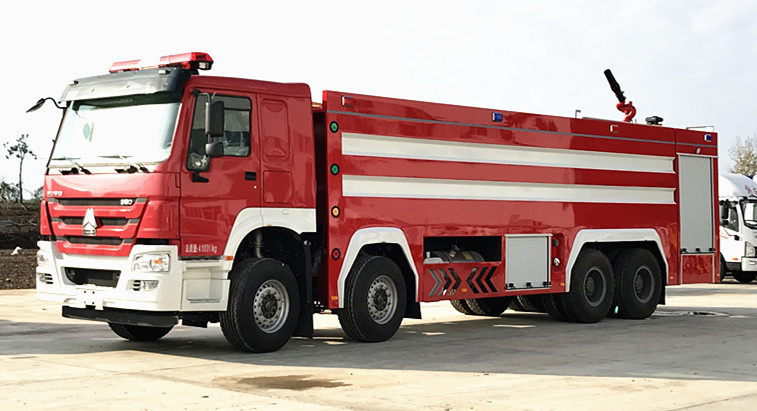 25噸特種消防車屬于大型車系;前四后八車型、一般以國產重汽、進口德國曼為代表、主要運用于研發水罐、泡沫、干粉以及剛泡沫水聯用等功能;而且由于車身碩大、也可以合理科學的對車身進行非常完美的進行局部小改、配備各種消防器材箱與消防裝備都不在話下!常見的有各種型號的發電機、升降照明系統、救援繩索、充電裝置、手抬泵、正壓式空呼系統等等;